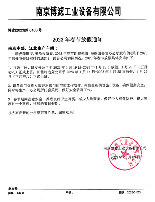 2023年度公司本部及生產(chǎn)車(chē)間春節(jié)放假安排通知
